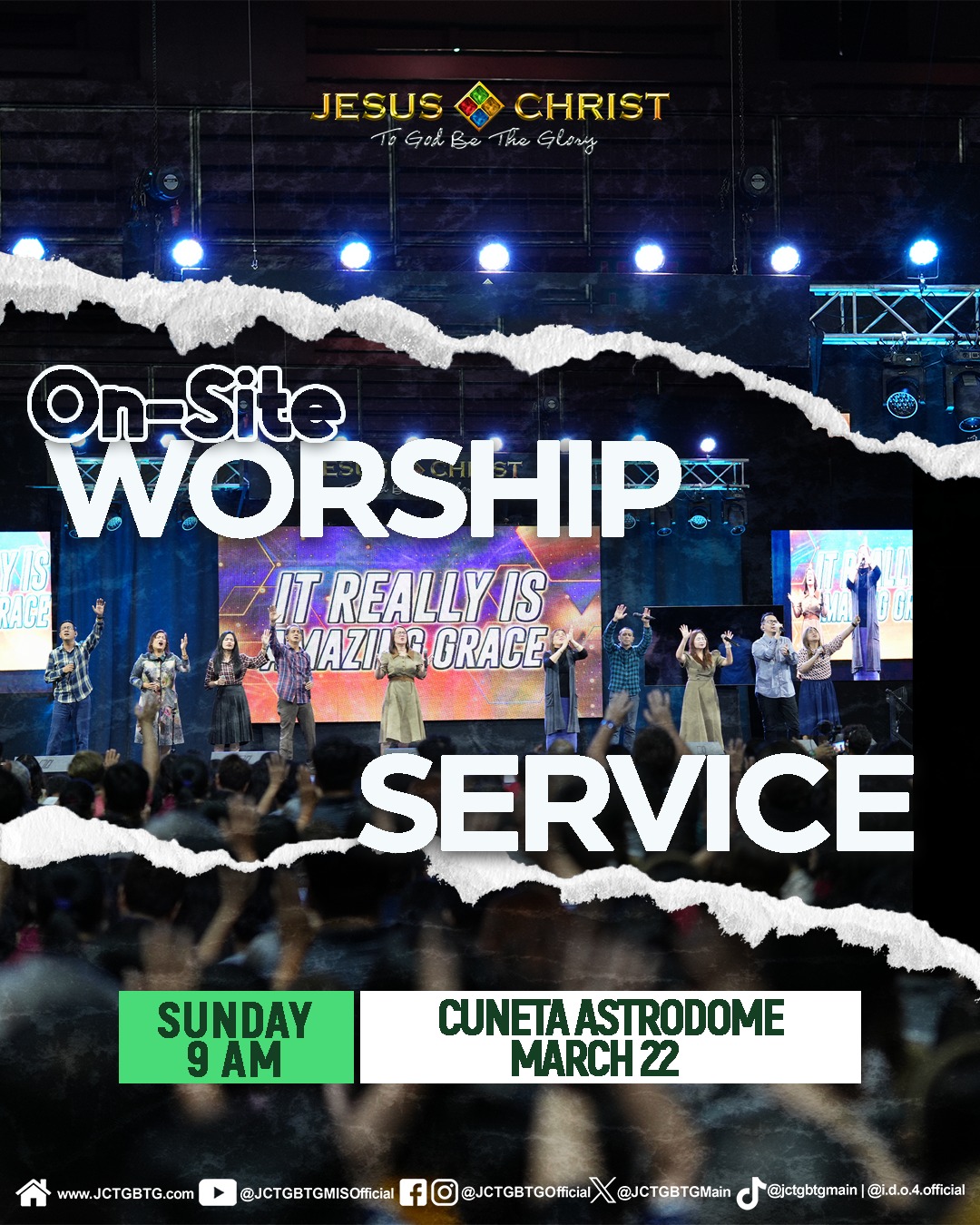 Join our On-Site Worship Service on Sunday and experience faith-boosting worship! March 22 | Sunday | 9:00 AM | Cuneta Astrodome. It's a great opportunity for our hearts to be blessed.